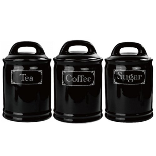 4x kitchen storage canisters set tea coffee sugar biscuit jars metal black. Need a kitchen canister set to help you organize your ingredients? Everything in its place with kitchen storage. 10 strawberry street everyday coffee, sugar, flour 3 piece porcelain canister set, white/black.